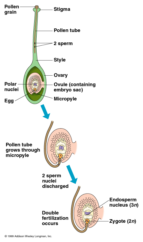 - 1 sperm fertilizes 2N central cell = 3N cell = endosperm