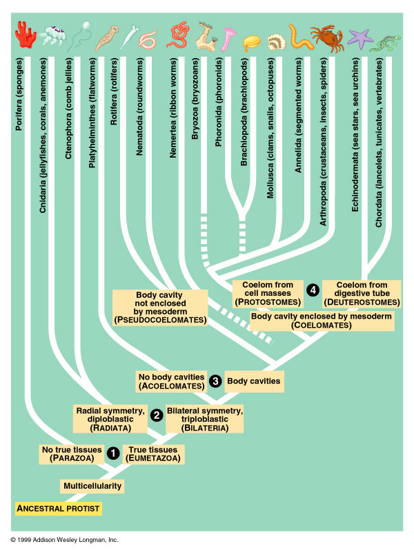 - Protostomates: animals whose digestive tract forms "mouth first"