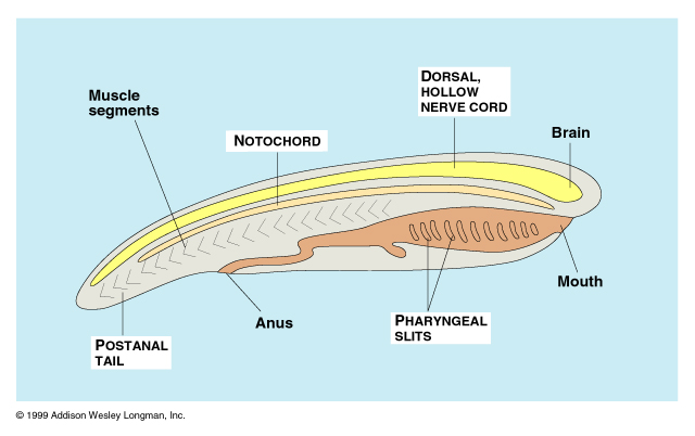 characteristics: pharyngeal gill slits, post-anal tail, notochord,