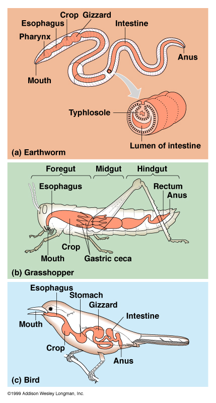 Churning & mixing: stomach, gizzard, crop, rumen