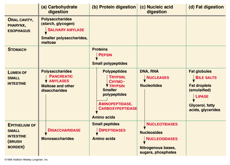Carbohydrates: amylase, disaccharidases