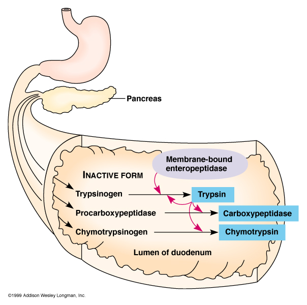 Proteins: pepsin, trypsin, peptidases