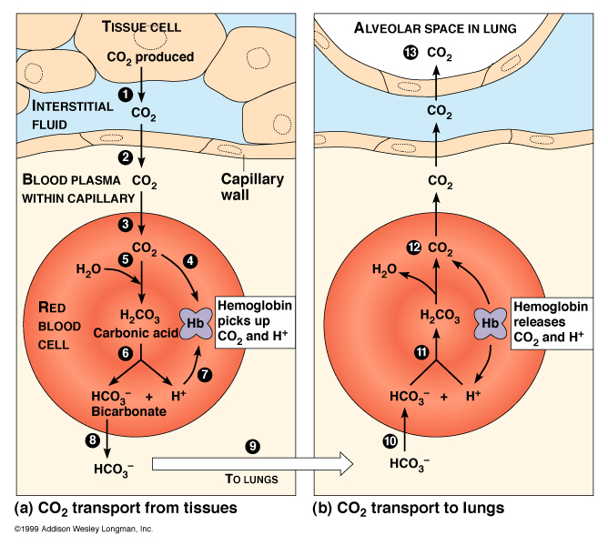- Pulmonary capillaries: pick up oxygen, release CO2