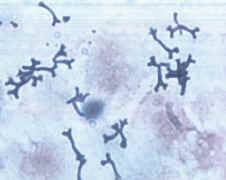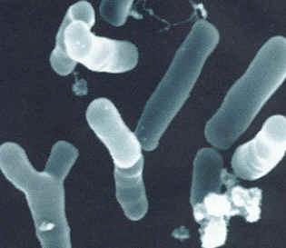 Bifidobacteria are Gram-positive irregular rods. They do not form endospores. Note the club-shaped or branched ends of the cells. Their metabolism is strictly anaerobic and fermentative, yielding a mixture of lactic acid and acetic acid. This acidification is thought to be beneficial to humans by restricting the growth of potential pathogens. "Bifid-supplemented" products are on the market (see links below).