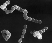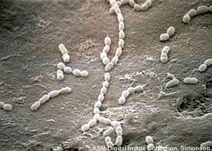Streptococci are Gram-positive, catalase-negative round or oval-shaped cells that often arrange into chains. They can be found inhabiting animal intestines, skin, and mucous membranes and are responsible for a variety of illnesses in their hosts. Due to its ability to produce toxins, S. pyogenes can cause Strep throat, scarlet fever, and "flesh-eating disease". S. pneumonia has a capsule that enables it to evade host defenses and cause pneumonia. S. bovis is a symbiont in the cattle rumen that rapidly ferments starch to lactic acid, an ability that can lead to acidosis in cows.