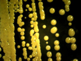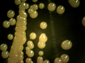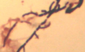 thin rods, 3 - 5 um long, often clumped into filaments |