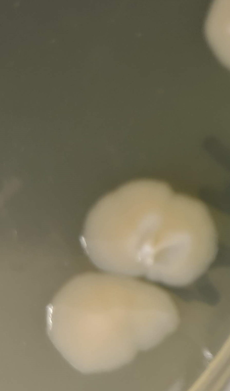 clusters/tetrads of cocci 1 - 2 um in diameter |