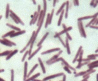 irregular (club-shaped) rods, 2 - 3 um long, often in