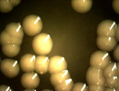 cocci 1 - 2 um in diameter, in regular clusters, esp.