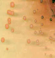 | Bacillus subtilis | White / opaque - large, flat, dull | |