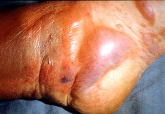 Infection of soft tissues with the anaerobic Clostridium perfringens may lead to gas gangrene. Clostridia are endosporing soil bacteria which gain entry through a wound. In deeper wounds, anaerobic conditions favor germination and growth of Clostridia, where they then produce numerous exotoxins, including several lethal toxins, hemolysins, lecithinase, collagenase, protease, hyaluronidase and other tissue degrading enzymes. Soft tissue infections result in cellulitis or myositis which can deteriorate into myonecrosis (gangrene) with death of tissue and resulting oxygen deprivation.