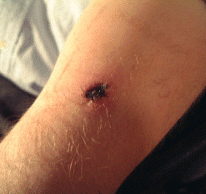- Symptoms: Papule/eschar at bite site; fever, headache, myalgia, chills & sweats, papulovesicular rash, crusts over (pox-like)